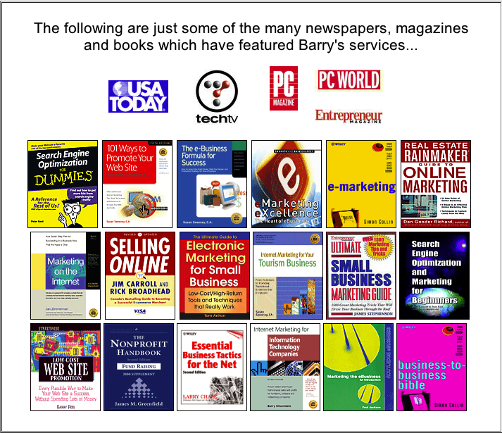 His services have been featured in PC Magazine, USA Today, Entrepreneur Magazine, and countless textbooks and marketing handbooks.